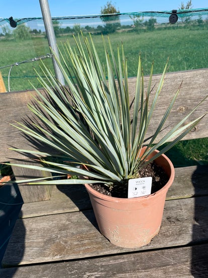 One of the most cold tolerant, it is hardy to drought as well as severe cold when established, down to temperatures of -15 degrees. It's thin, blue/silvery leaves are slightly waxy, have narrow yellow margins, and are arranged in an attractive symmetrical rosette. This is a remarkably beautiful Yucca.