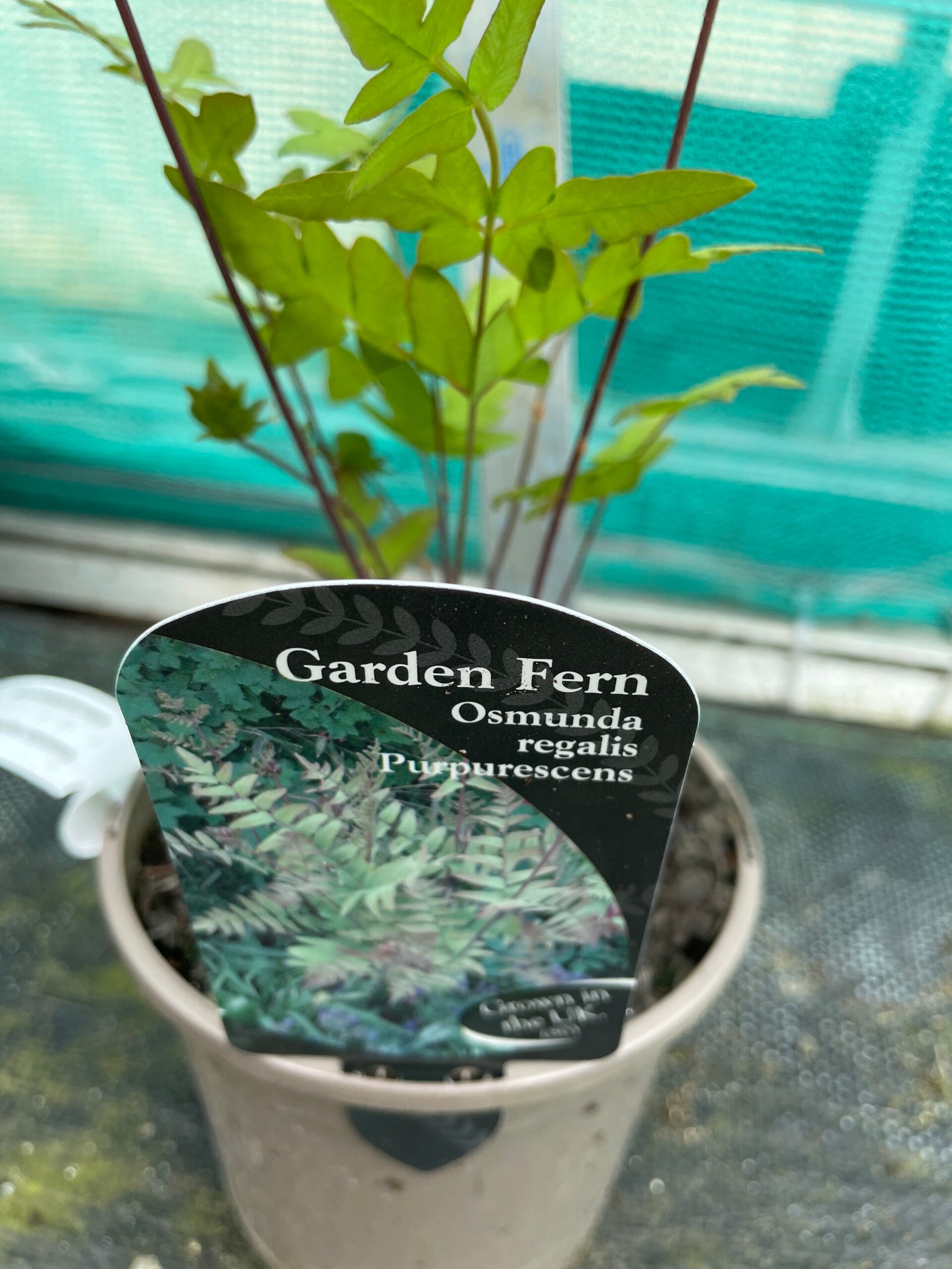 Large fern with green fronds on strong red-purple stems forming a dense clump. Deciduous. Fully hardy. 180x120cm