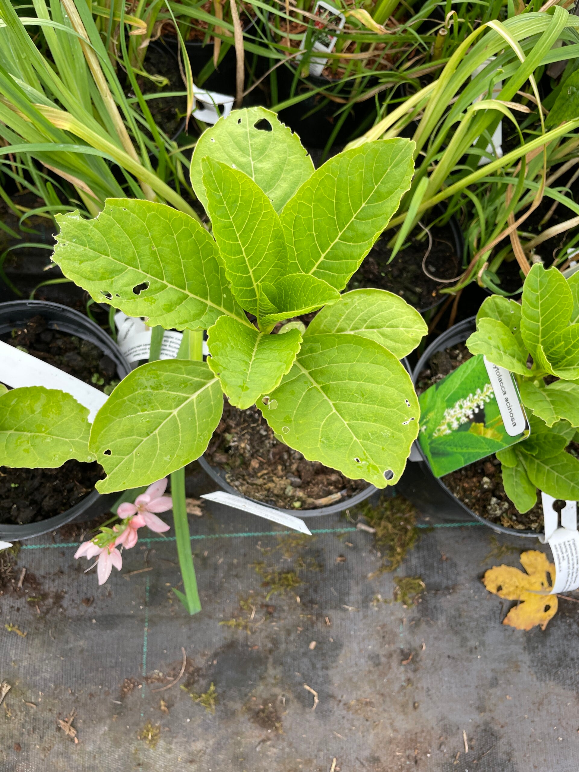 A perennial on chunky stems to 1.5m tall with leaves to 15cm long bearing terminal and axillary spikes of purple fruit. Full sun in well drained soil.
