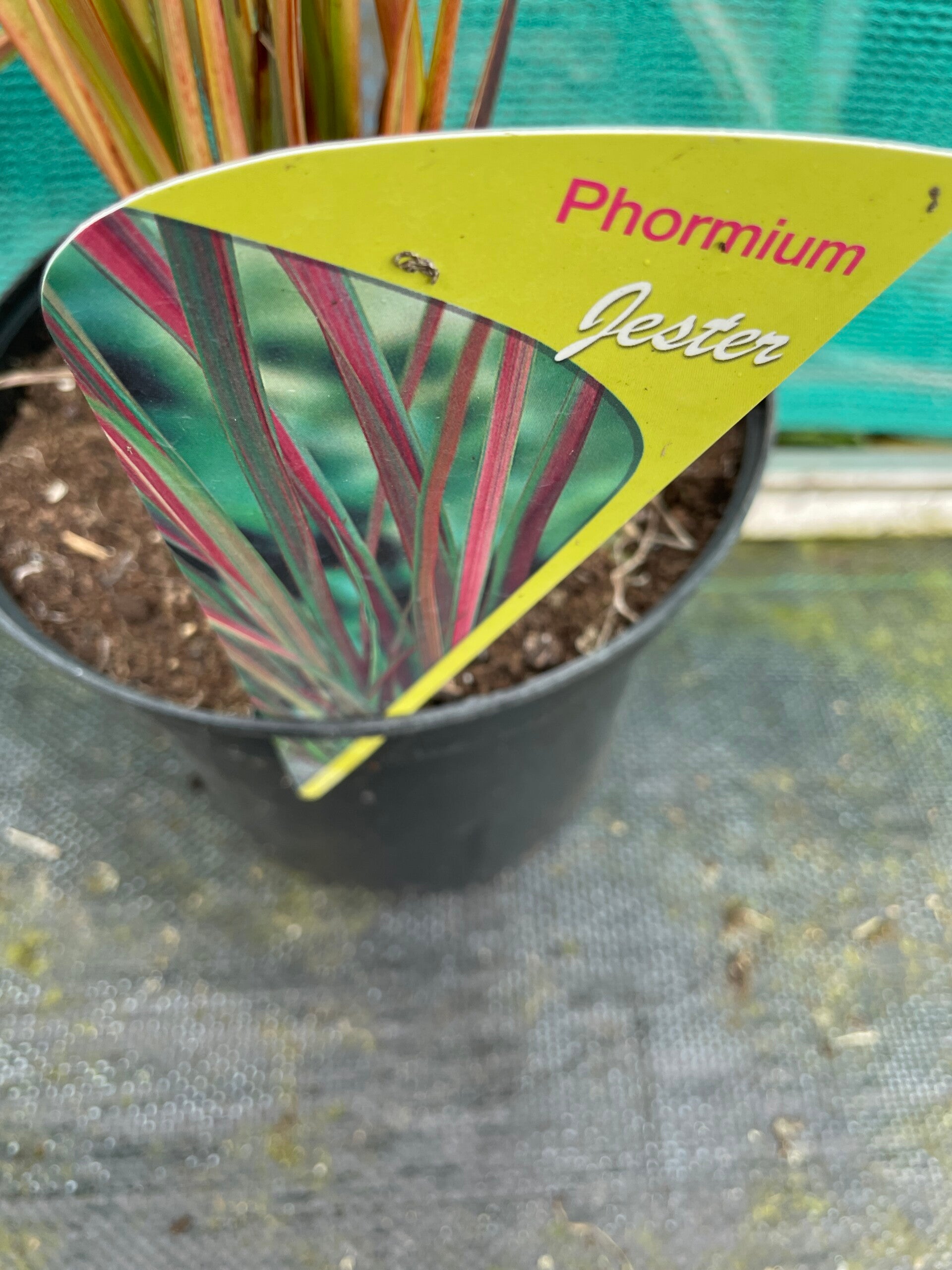 Phormiium Jester is an evergreen shrub, the foiliage has pink centres and lime green margins. 1m x 1m. Full sun
