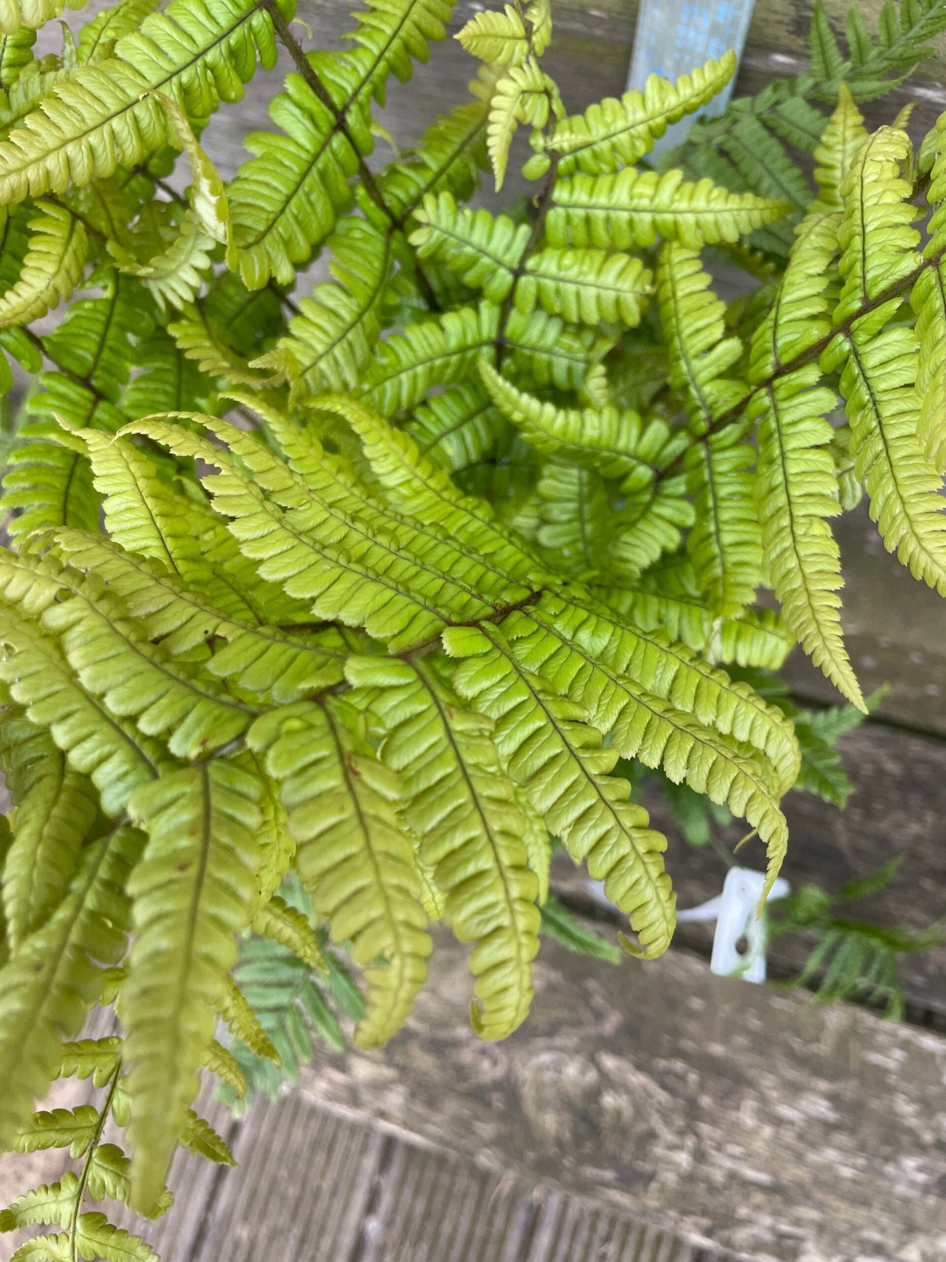 A deciduous or semi-evergreen fern, forming tufts of erect, lance-shaped, bipinnatifid fronds, bright yellowish-green when young, clothed with blackish-brown scales on the stalk and midrib